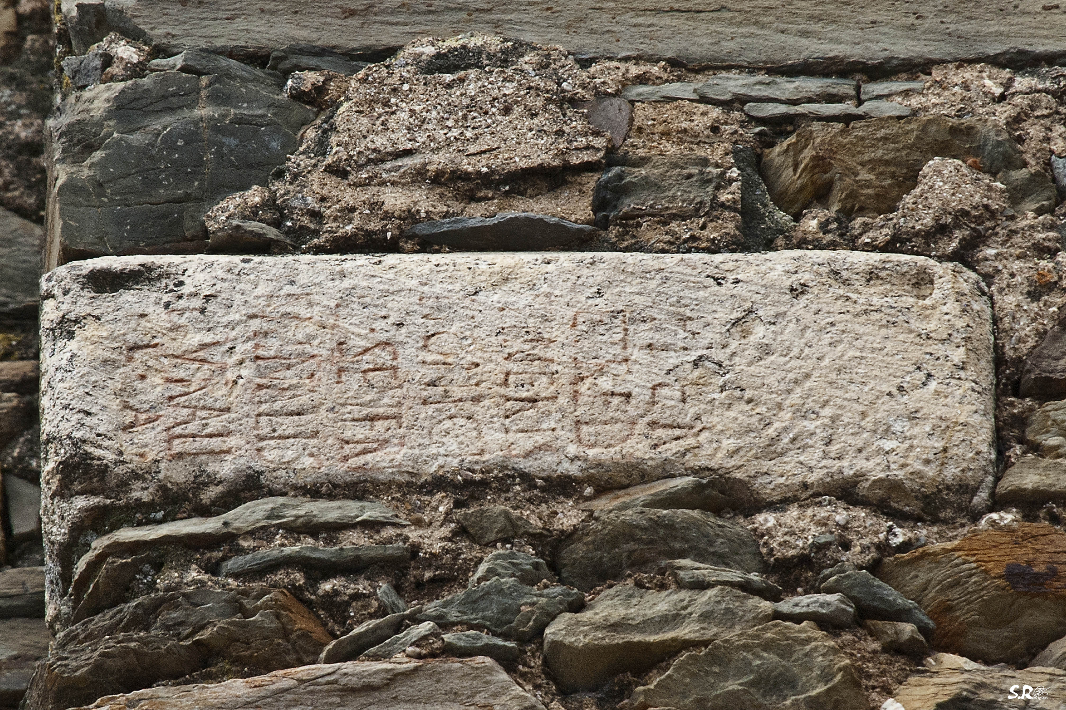 Una transcripción aproximada de la inscripción de la piedra es la siguiente: /...IEA/ETAED/NERIS/N.J.J.H/.E.FA/FAMILIA/U.V/I.A/