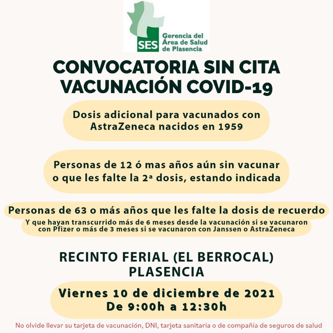 10 de Diciembre - Convocatoria sin cita vacunación COVID-19