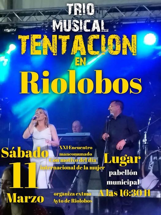 Trio musical, Tentación en Riolobos. 09 marzo 2023 En el pabellón multiusos para todos los públicos. Con motivo del encuentro mancomunado del día de la mujer.