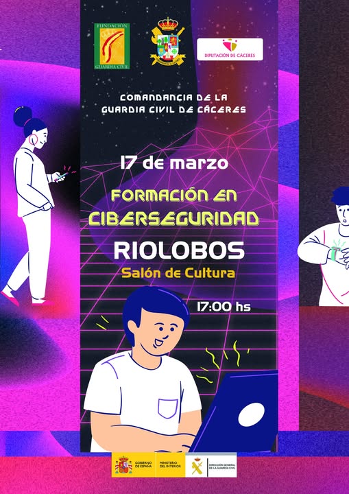 El Próximo lunes 17, a las 17:00 horas en el Salón cultural habrá un curso impartido por la Comandancia de la Guardia Civil sobre CIBERSEGURIDAD.