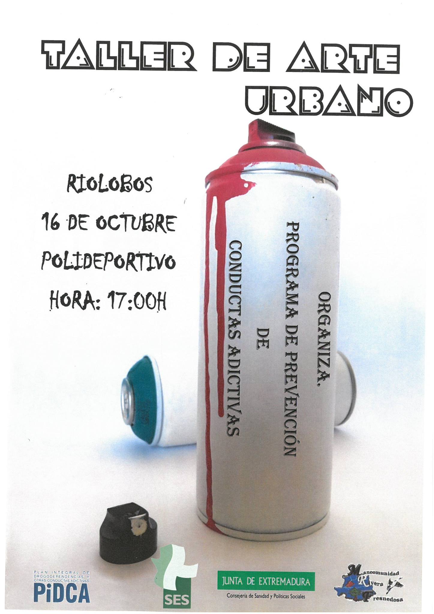 El Programa de Prevención de Conductas Adictivas de la Mancomunidad Rivera de Fresnedosa, organiza en Riolobos el próximo 16 de octubre, un TALLER DE ARTE URBANO en el que podrán colaborar todos los vecinos y vecinas de la localidad.