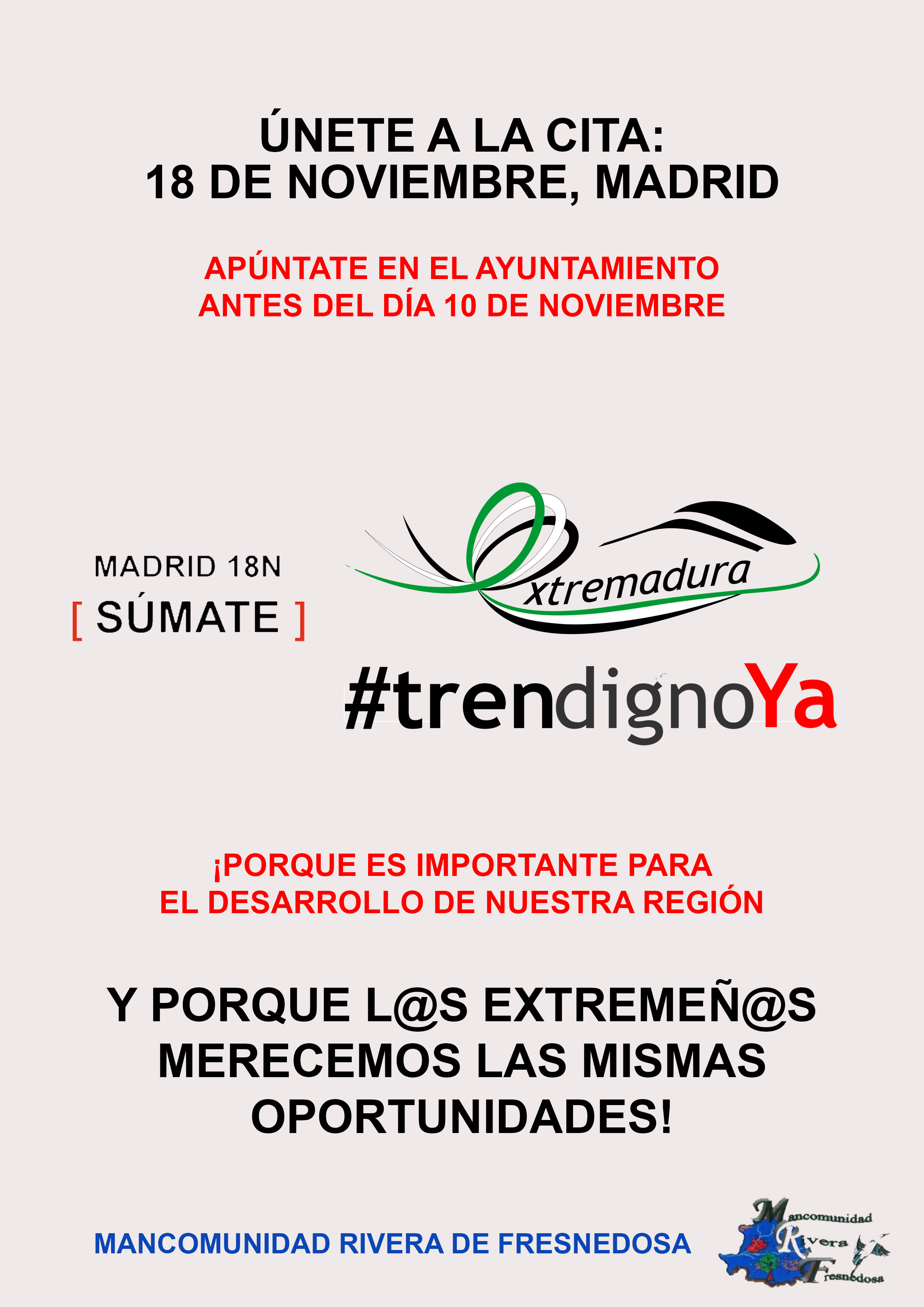 Riolobos se suma a la REIVINDICACIÓN de un TREN DIGNO para Extremadura. Desde el Ayuntamiento se pondrán autobuses GRATUITOS a disposición de...