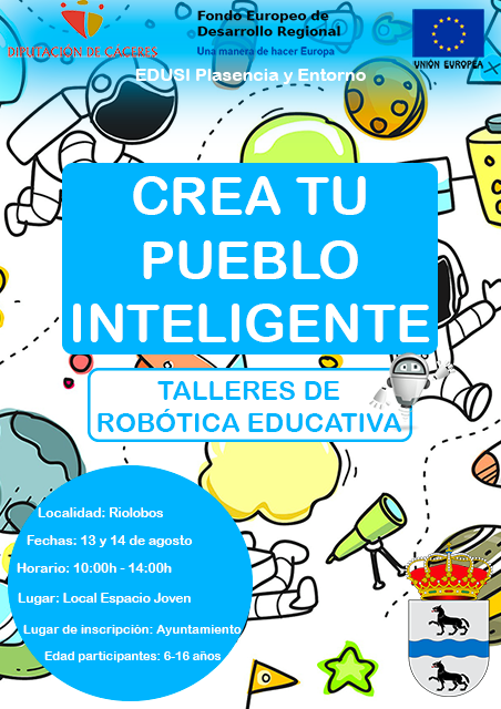 El Ayuntamiento de Riolobos informa que los días 13 y 14 de agosto se va a celebrar en el Centro Joven de la localidad, diferentes talleres de Robótica Educativa para niños y niñas de 6 a 16 años.