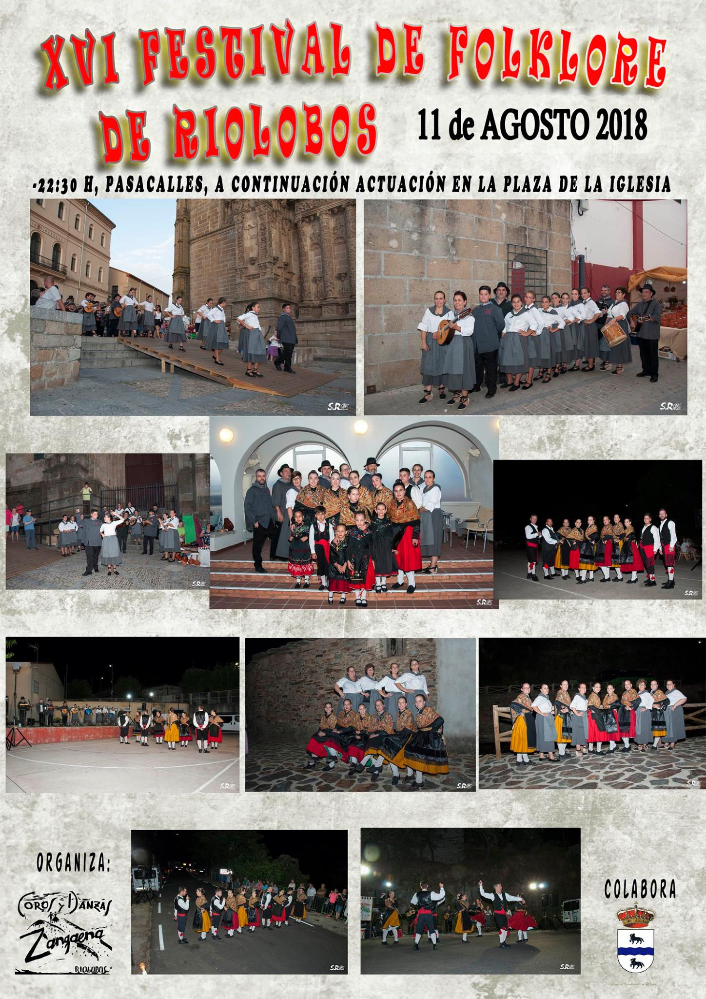 El día 11 de agosto se va a celebrar en la localidad de Riolobos, el XVI Festival de Folklore de Riolobos. A las 22:30 horas se llevará a cabo el pasacalles y a continuación, actuación en la plaza de la iglesia.
